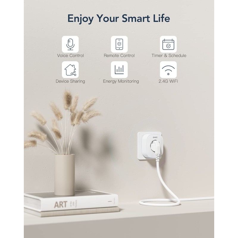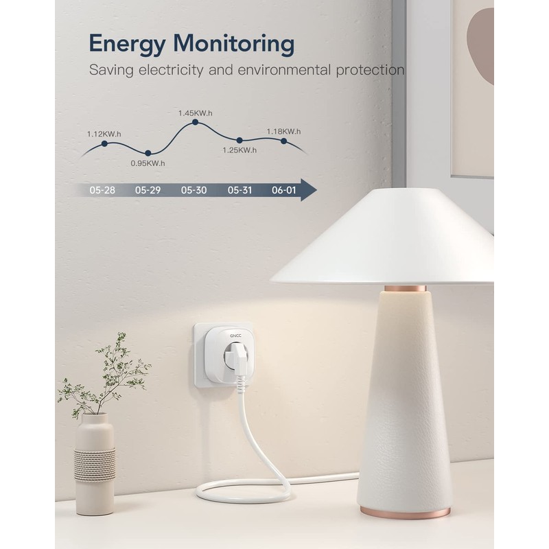 GNCC WLAN Steckdose mit Stromverbrauch, Alexa Steckdose 4er Pack, , Smart Steckdose Kompatibel mit Alexa & Google Home, Fernbedienung, Sprachsteuerung, 16A, Weiß