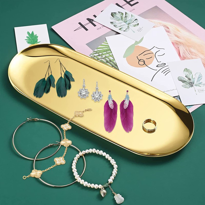 - 【PREMIUM QUALITY】:Our tray is made of high-quality 304 food grade stainless steel, which is rust-free, non-toxic, durable, and safe to use. The vanity table tray is designed with a mirror and brass finish, coupled with a fine plating process that gives it a good gloss. The oval corner design with clean lines is shiny and smooth, making it simple but beautiful.