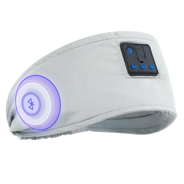 GNEGNI LIFE 6-in-1 Bluetooth Sleep Headphones Headband - Wireless Soft Music Headband,Sweatproof Gym Headband, with Earphones&Mic for Sleeping, Gym, Yoga & Travel (Lycra Gray)