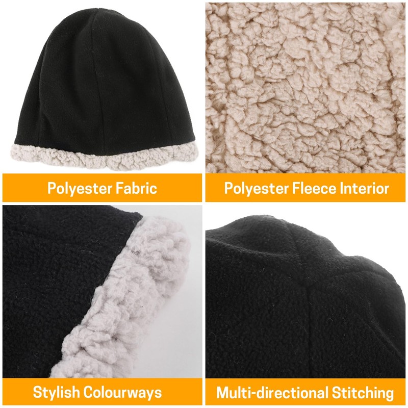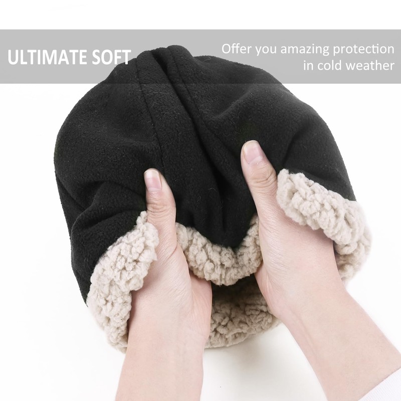 - Warm & Cozy: The outer layer adopts close-fitting rib design of polyester fabric, which effectively blocks the cold wind in winter. The lining is soft polyester fleece insulated heat and keeps your head and ears warm and comfortable.