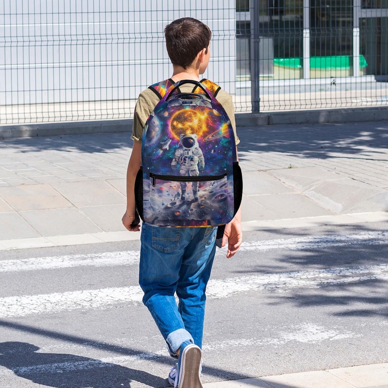 GNEW Space Astronaut Backpack for Boys Space Planet Rocket Solar System Galaxy Starry Stars Backpack, Kids Space Backpack for Boys Girls, Elementary Middle High School Bags Travel Backpack,16.5 Inch