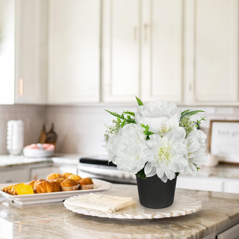- [Fake Flowers in Vase] -Each artificial potted flower comes pre-arranged in a black plastic pot (2.7" x 2.7" x 3"), perfectly sized to brighten up your space without overwhelming it. The total height is approx. 9.8 inches, just right for tabletops, shelves, or countertops