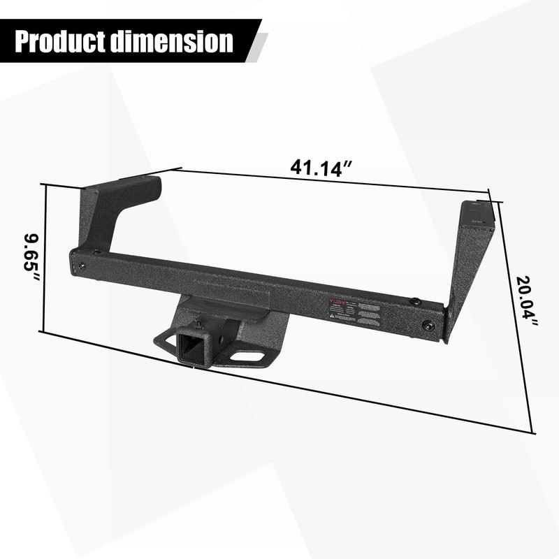 - 【Performance】Textured Black Trailer Hitch Dimensions: 43.3"L x 11.4"W x 8.3"H. Weight: 35.35 lbs. Designed with fully welded construction, this trailer hitch is stable and reliable enough to achieve good towing capacity.