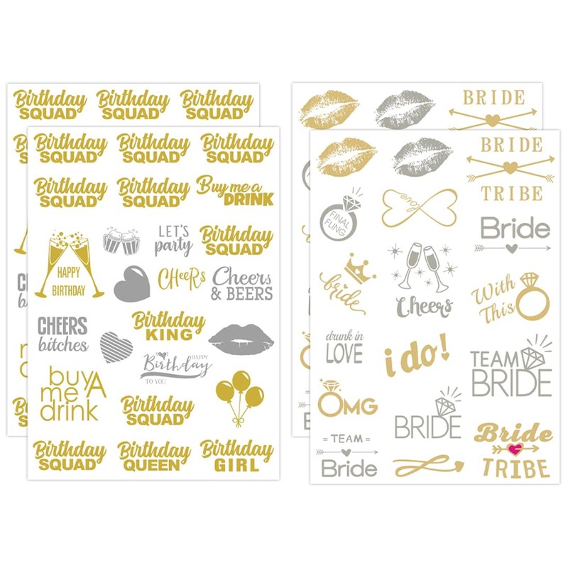 • Packungsinhalt: Enthält 4 temporäre Gold-Tattoos für den Junggesellenabschied, langlebig, wasserdicht, abnehmbar und langlebig.