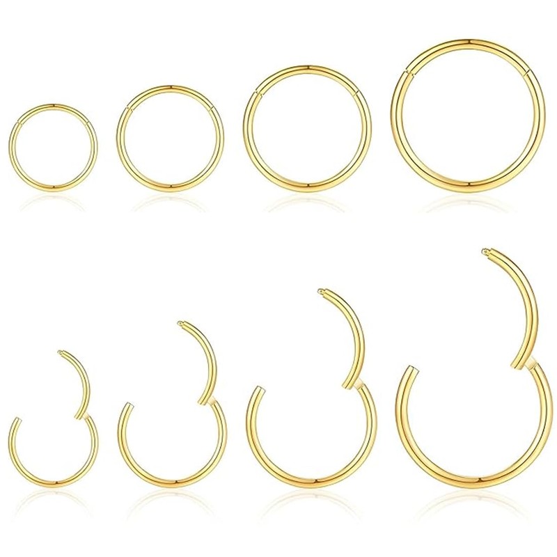 GNHG 8 Stück Nasenpiercing Ring Piercing Ohr Chirurgenstahl Septum Ring Nasenring Hoop Helix Conch Tragus Septum Piercing Gold Knorpelohrring Lippenring 6mm/8mm/10mm/12mm