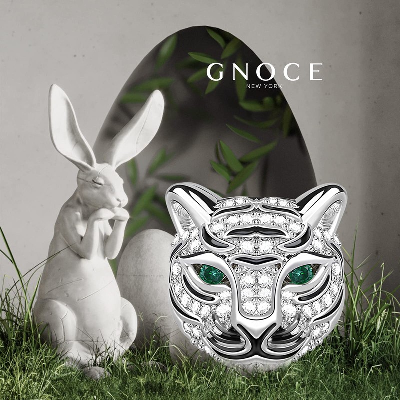 Gnoce Animal Head Bead Charms, 925 Sterling Silver, Charm Jewellery with Cubic Zirconia, Jewellery for Women / Men / Girls, Silver