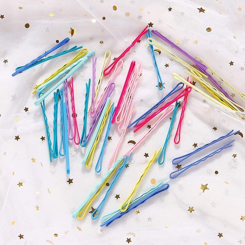 Gnognauq 100 pcs 2 Bobby Hair Pins Multicolored Hair Styling Clips 2 Inches Metallic Barrettes for Women and Girls