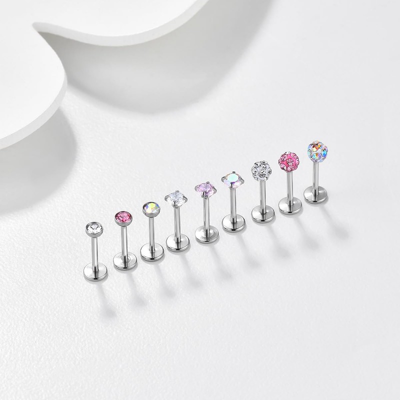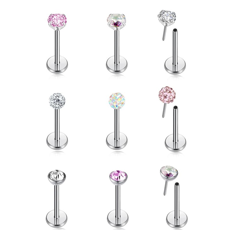 - 9pcs body percing jewelry,perfect for lip,labret,helix tragus,cartilage,conch,monroe and nose etc.