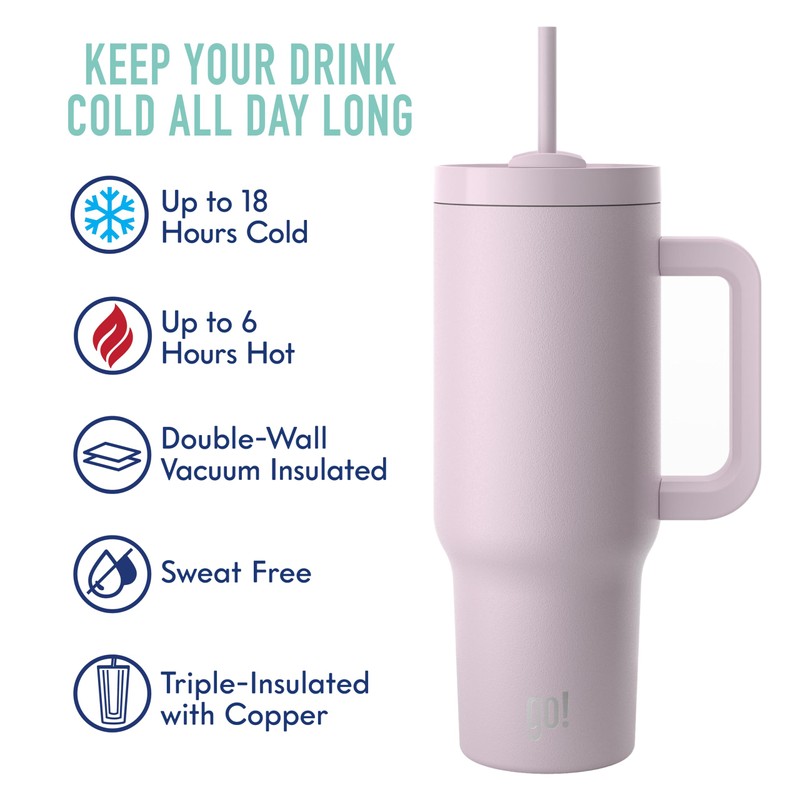 go! 40 oz Tumbler with Handle and Straw | Leakproof Triple Insulated Tumbler with Lid and Straw | Made of Stainless Steel | Cup Holder Friendly | Purple