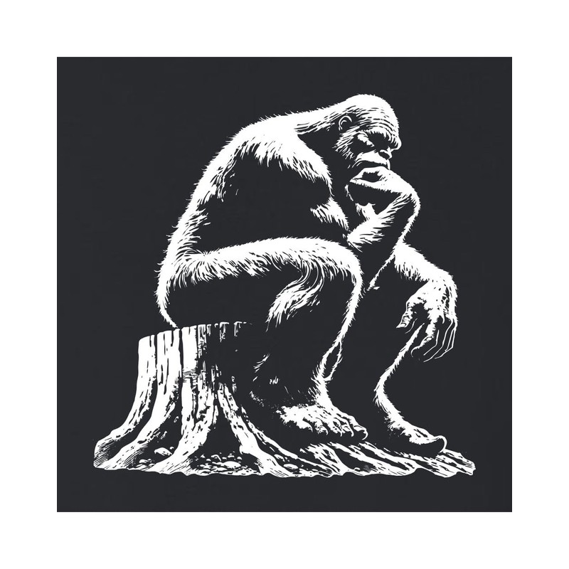 Go All Out XX-Large Black Mens The Thinker Bigfoot Sasquatch On A Tree Stump Funny Sweatshirt Crewneck