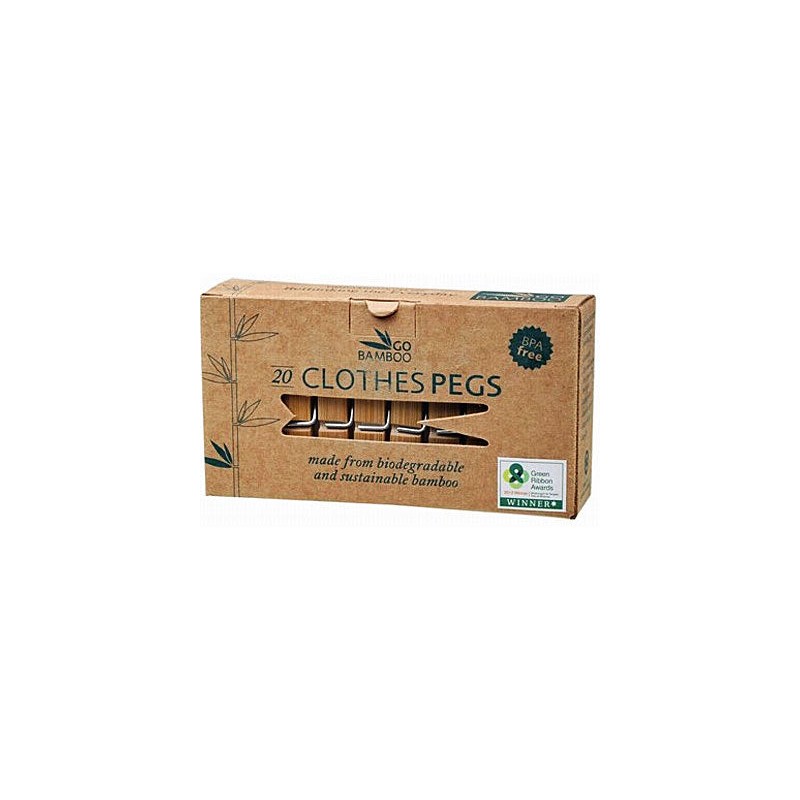 Our pegs are made from sustainable and biodegradable bamboo with a degradable spring, packaged in a recycled cardboard box. They contain very few tannins (unlike wooden pegs) so they won’t stain your light coloured clothing and they’re very strong and durable under any weather.