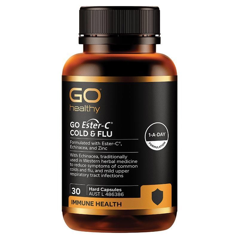 GO ESTER-C® COLD & FLU is a quality formula with Ester-C® and Zinc to support healthy immune system function. It also contains Echinacea, traditionally used in Western herbal medicine to reduce symptoms of common colds and flu, as well as mild upper respiratory tract infections. Ester-C® is a non-acidic form of Vitamin C to maintain immune system health.