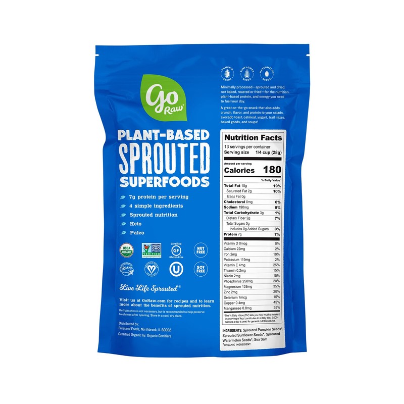 - SPROUTED SUPERFOOD: Go Raw sprouted seeds are soaked and dried—never roasted or fried—to unlock beneficial bioavailable nutrients, and making it easier for your body to absorb them. All with a great crunchy texture and flavor!