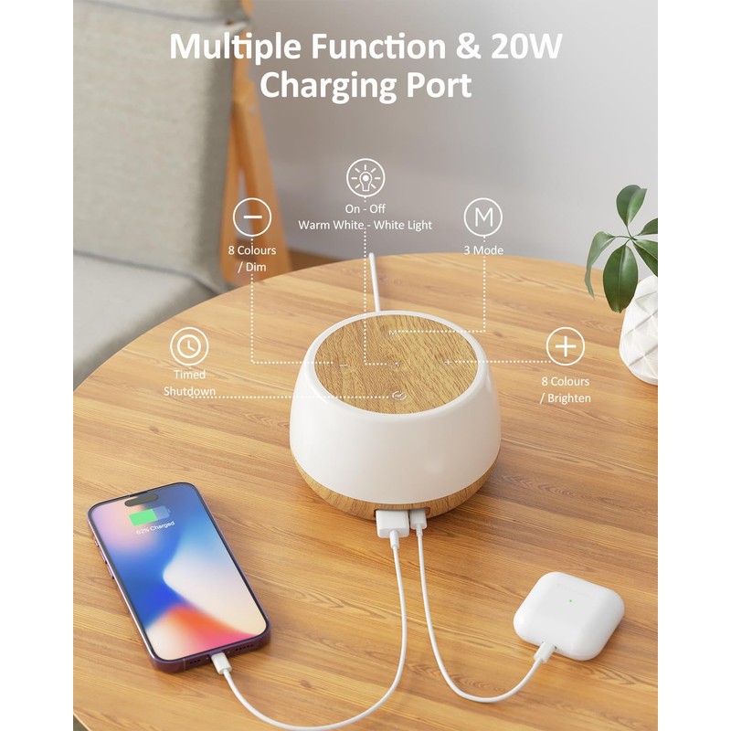• Charging+LightingLED Bedside lamps for bedroom equipped with 2 charging ports, USB-C and USB-A, which can well meet your charging needs for a variety of devices. The bedside lamp with 20W USB charging port integrates lighting and charging to make your life more convenient.