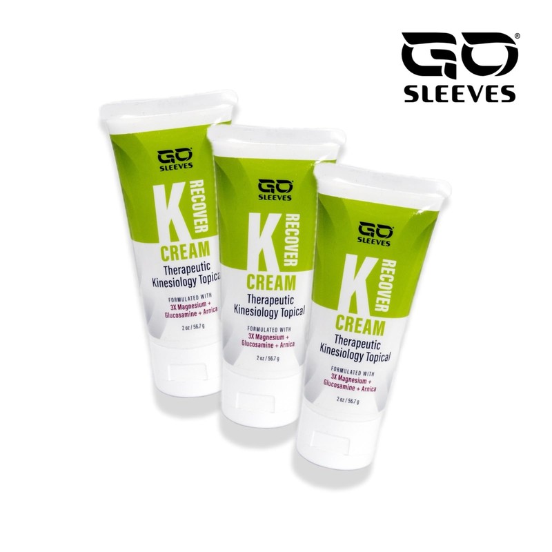 Relax aching muscles and soothe joint tension with K-Recover Cream by GO Sleeves, a potent pre- and post-workout therapeutic topical to use with or without GO Sleeves. It is made with all-natural ingredients. This non-oily blend of active ingredients includes magnesium chloride, glucosamine HCL, arnica, and a complementary medley of essential oils. Use with and without GO Sleeves to support active post-workout recovery for joints and muscles.