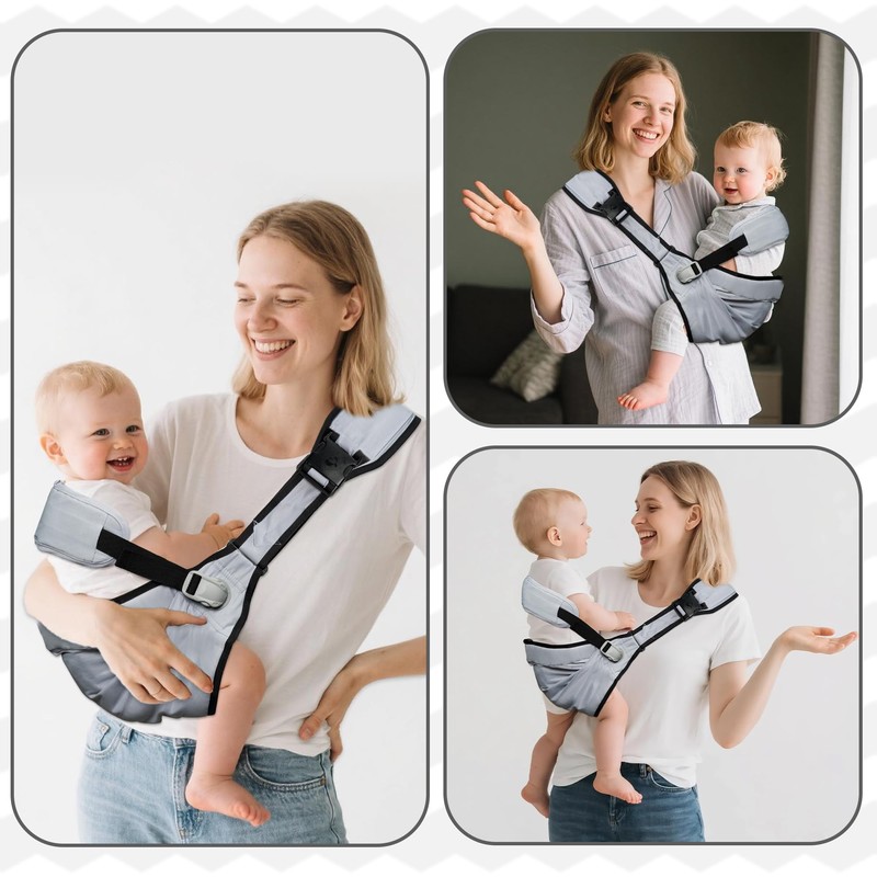Baby Carrier Sling with Side Support Straps, Hands Free Adjustable Toddler Sling Carrier, Newborn to Toddler Carrying with Cushioned Shoulder Straps, Ergonomic M-leg Safe, 0-36 Months