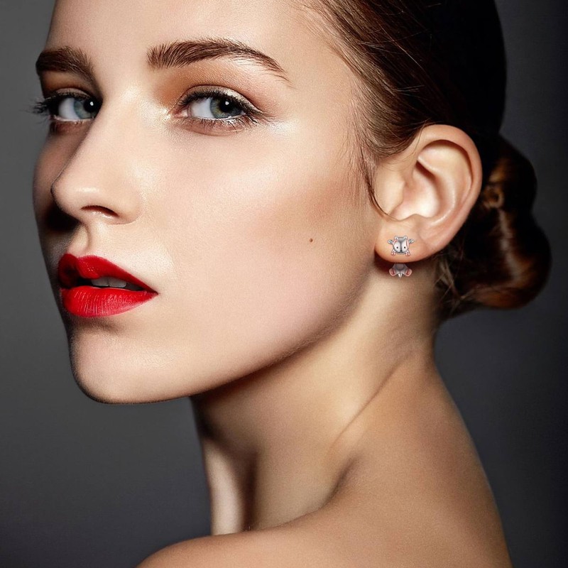 - 【Goat Ear Jacket Earrings】 Two tone plated sterling silver Goat ear jacket earrings jewelry for women or girls. The goat, known for its tenacity, independence, and resourcefulness, embodies qualities that inspire and empower. By wearing these cute Goat ear jacket earrings, adding a touch of positivity to your life.