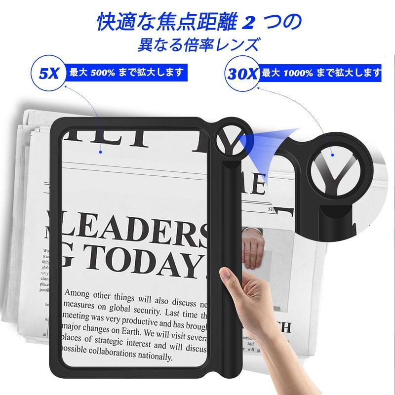 - 【10X & 5X Magnification】This magnifier magnifies small prints up to 1000% and 500% without optical distortion. Perfect for reading books, newspapers, magazines, etc