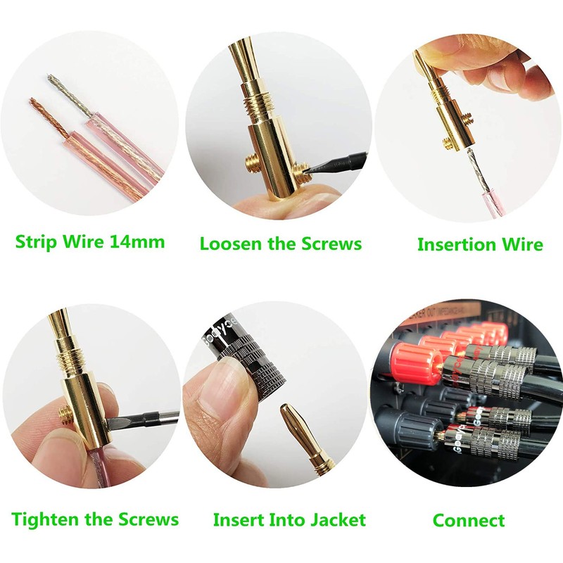 - Widely Application : The Goaycer Banana Plug Widely Use for Speaker Wire /Wall Plate /Home Theater / Audio/Video Receiver /Amplifiers and Sound Systems