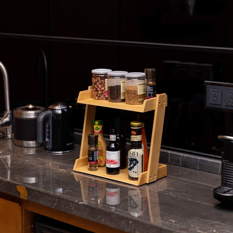 GOBAM Spice Rack Organizer 2-Tier Kitchen Countertop Cabinet Storage Shelf, Assemble Quickly, Bamboo