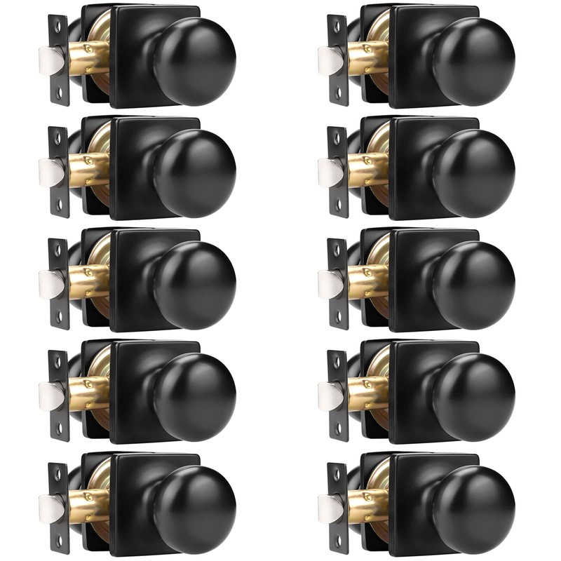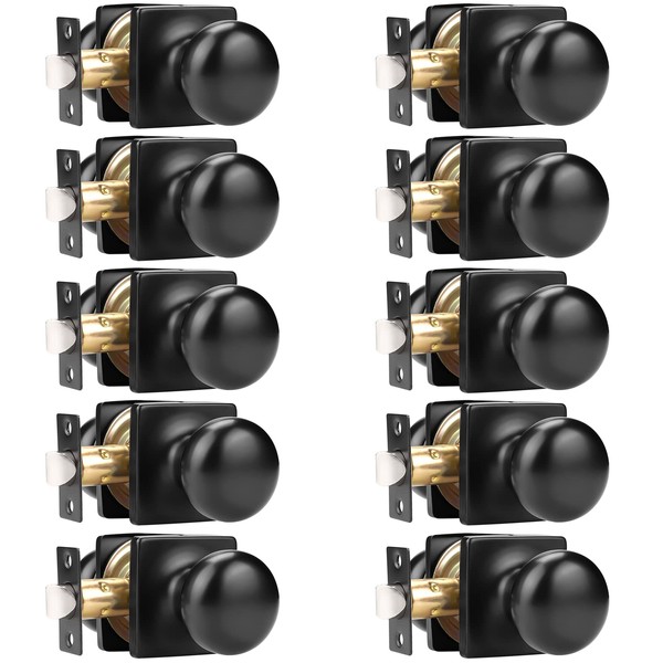 GOBEKOR Black Door Knobs Keyless Interior Door Knobs Matte Black Round Closet Door Knob Stainless Steel Square Door Knobs 10 Pack