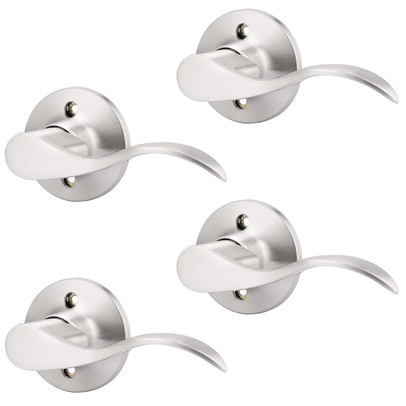 GOBEKOR 4 Pack Brushed Nickel Half Dummy Door Handle for Closet Keyless Interior Door Lever Wave Right Handed Single Dummy Handles