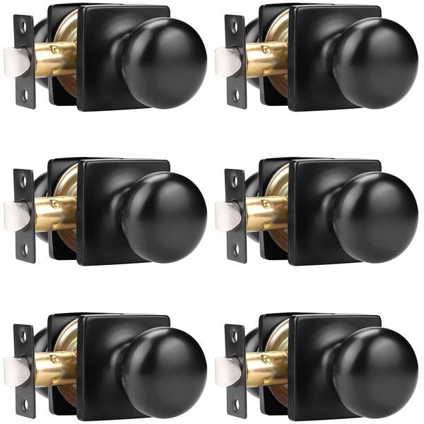 GOBEKOR 6 Pack Keyless Passage Door Knobs Interior with Lock Matte Black Hall...