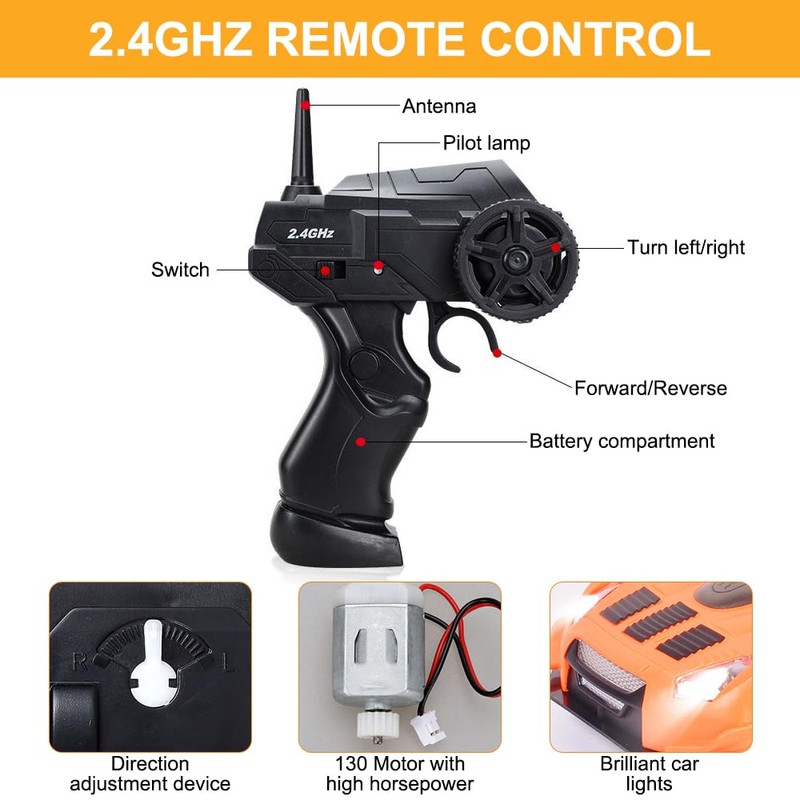 - Dazzle cool modelling design: this remote controlled car shell is based on an improved version of the classic car. Made of high toughness ABS process, equipped with high-brightness headlights, you can quickly locate the remote control drift car in the dark.