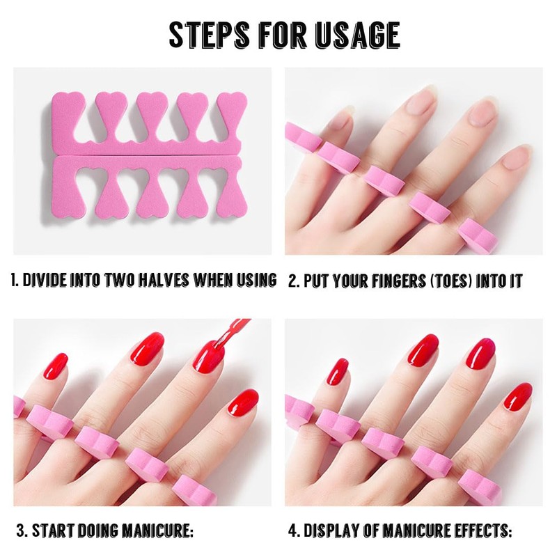 - Areas of application: the toe and toe separator is suitable for work, home, parties, body care and other places, e.g. For nail or toenail care, applying gel polish, trimming feet, nails, polishing, etc.