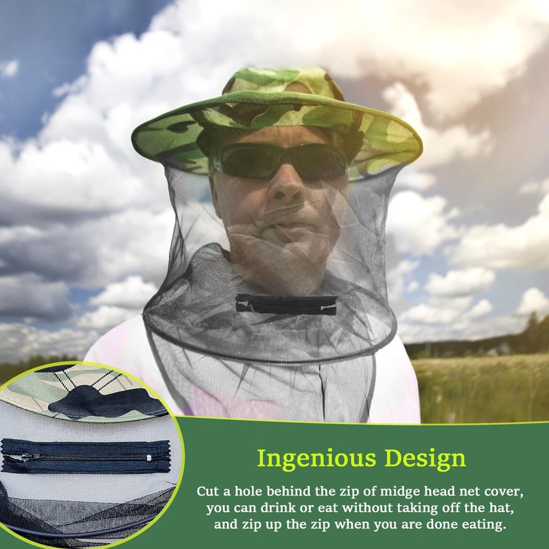 - 【Ingenious Design】Cut a hole behind the zip of midge net hat's mesh cover, you can drink or eat without taking off the hat, and zip up the zip when you are done eating.This pop up midge net hat can be easily folded and carried around.