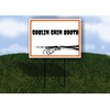 GOBLIN GRIN BOOTH Halloween Skeleton Left Arrow Single Sided 18x24 in Yard Road Sign w/Stand