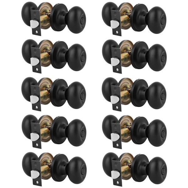 Gobrico 10 Pack Egg Style Door Knobs Handles Privacy Function for Interior Doors Black Finish