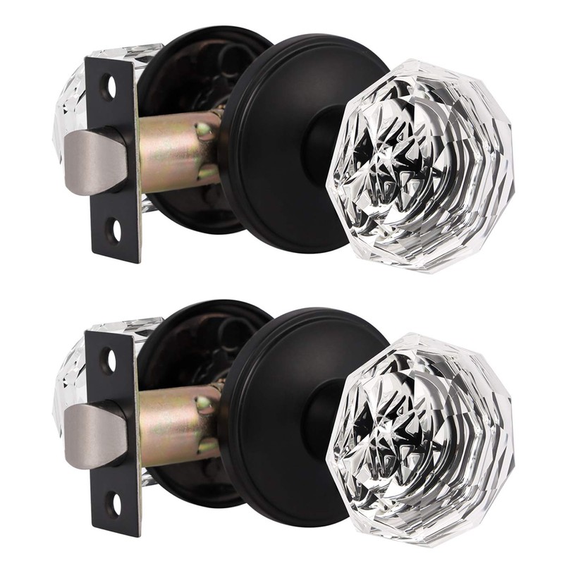 - 【PRODUCT FEATURES】Octagon shape.Crystal knob & zinc alloy rosette.Anti rust,durable.Clear diamond knob & matte black rosette.Confirm with ANSI Grade 3, Exceeds 200,000 cycles. Fit for right and left handed doors.