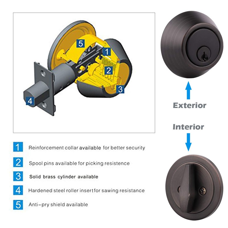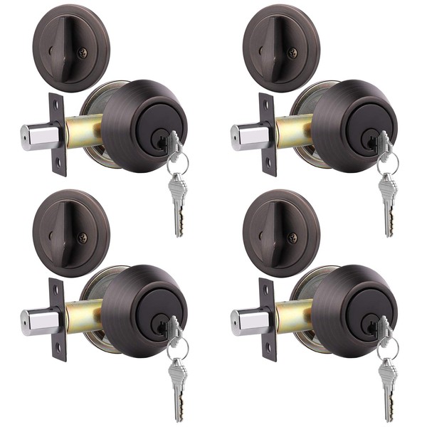 Gobrico Single Cylinder Deadbolt Locks for Entry Front Door Oil Rubbed Bronze Finished,Keyed Alike Locksets with Same Key,Thumb-Turn Button Inside,4Pack