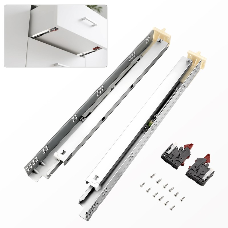 Gobrico Soft Close Under Mounting Drawer Slides 18 inch 1Pair, Full Extension Concealed Drawer Runners Glides