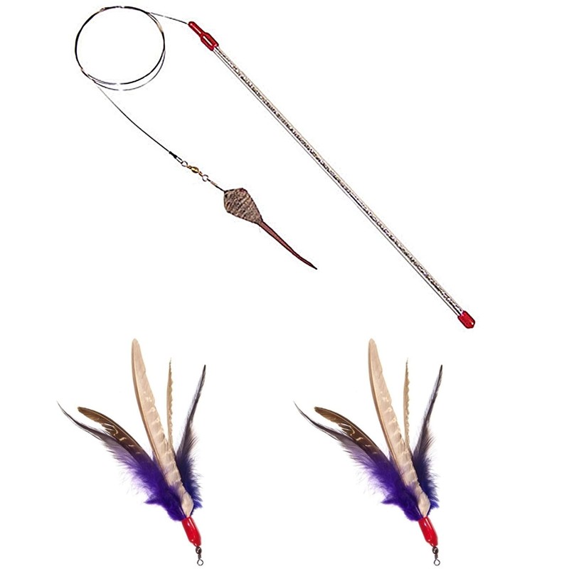 - Wand & Braided Safety Wire: The 12 inch flexible glitter wand will definitely get their attention but the braided safety wire does the opposite. Your feline friend will lose sight of the wire as they chase and pounce on their prey.