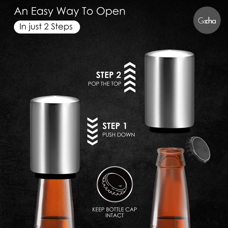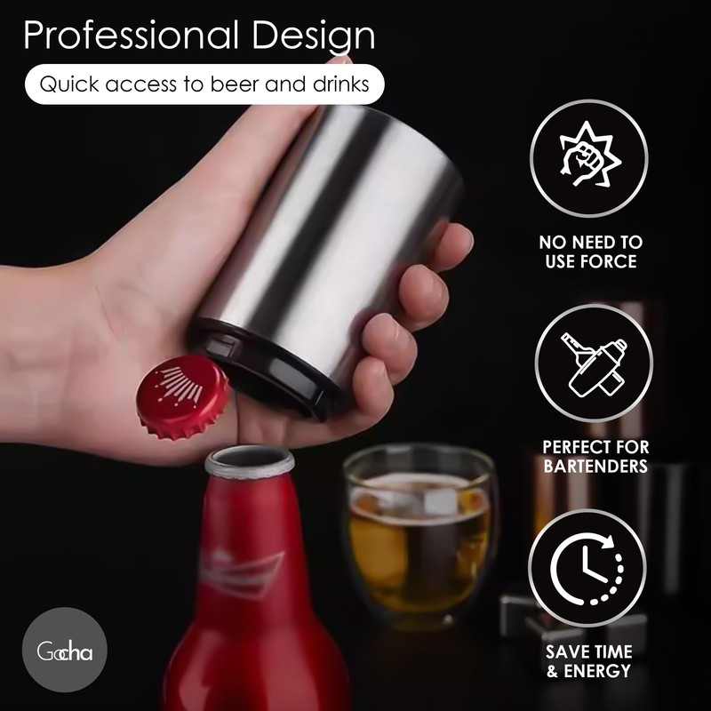- DURABLE STAINLESS STEEL CRAFTSMANSHIP: Crafted from high-quality stainless steel, this Bottle Opener is built to withstand the test of time. The robust construction ensures longevity, making it a reliable tool for countless openings without compromising on performance. Thus, With a simple Press & Pop design, effortlessly remove bottle caps in seconds, making it the ultimate bar accessory.