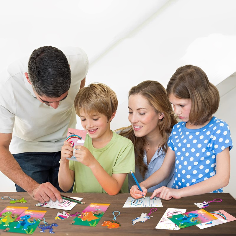 - Unique Design - Our keychains and cards have 6 different cute designs, featuring unicorn and dinosaur. It is an ideal Valentine's gifts for both boys and girls on kids classroom.