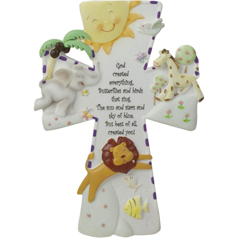 God Created Everything 7 inch Resin Stone Decorative Hanging Wall Cross