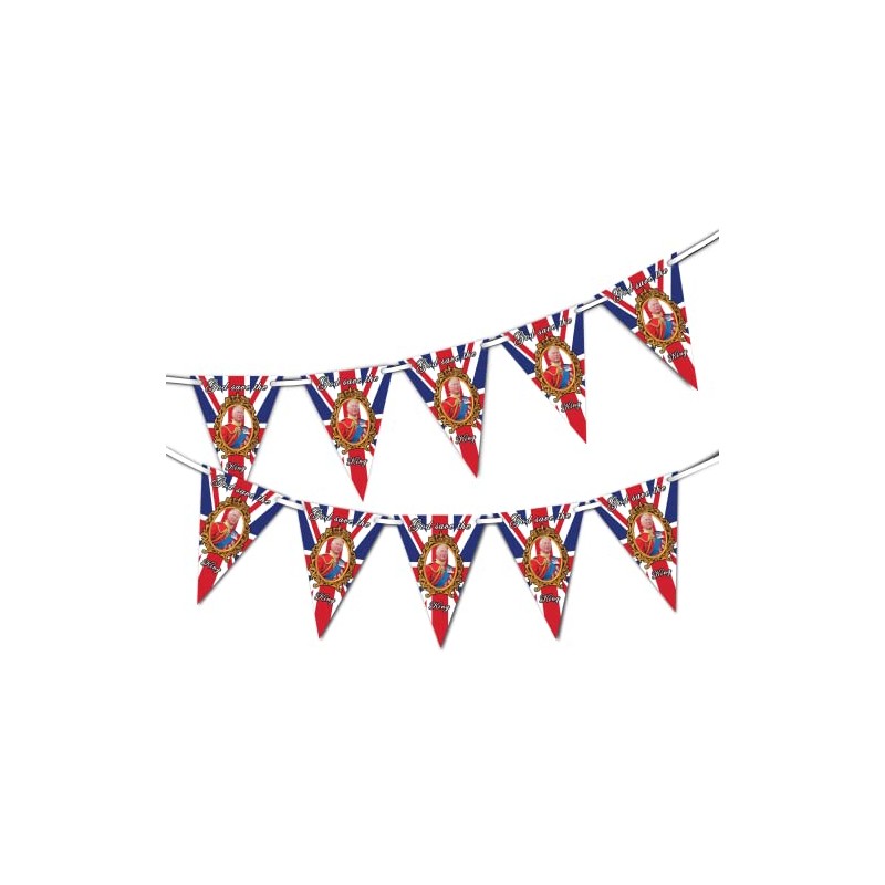 - God Save the King Charles the third union jack set of 15 triangle bunting and 10m of ribbon