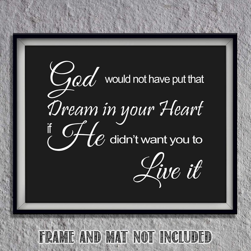"God Would Not Put That Dream in Heart-Live It" 8 x 10" Spiritual Wall Decor. Modern Typographic Print-Ready to Frame. Home-Office Décor. Great Christian Gift. Inspiring Reminder To Trust God's Plan.