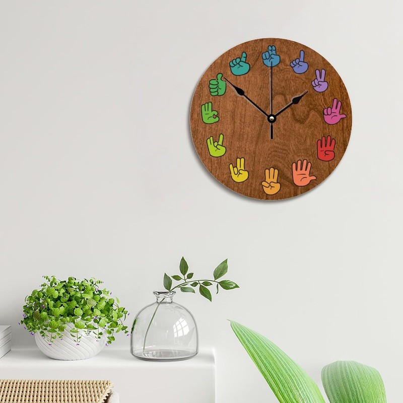 godblessign American Sign Language Clock ASL Rainbow Hand Wooden Wall Clocks Battery Operated 10 Inch Silent Modern Boho Retired Living Room Decor Gift for Man Woman Friend Anniversary
