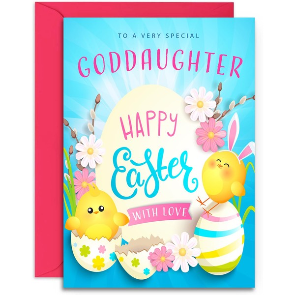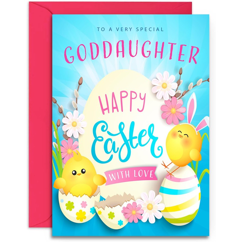 Goddaughter Easter Card - Cute Chicks Design, A5 Size with Pink Envelope