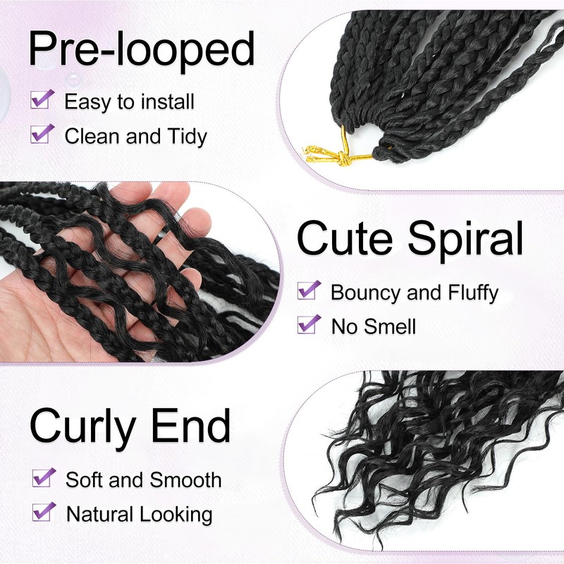 - 【Cute Curly Crochet Hair】:BEFUNNY Goddess Box Braids Crochet Hair For Black Women is the new design of traditional box braids crochet hair, it is bohemian boho crochet braids with extra 2 pieces cute spiral curls, will offer an fluffy,fuller curvature hair and attractive look.Knotless crochet braids are relatively low maintenance and are a great style for your every day look.