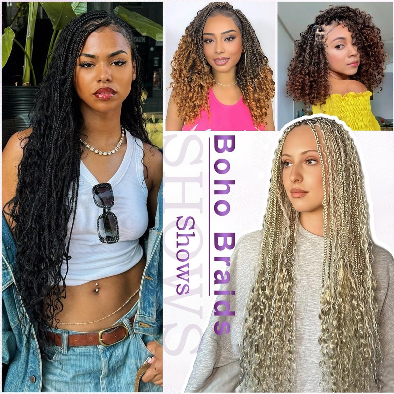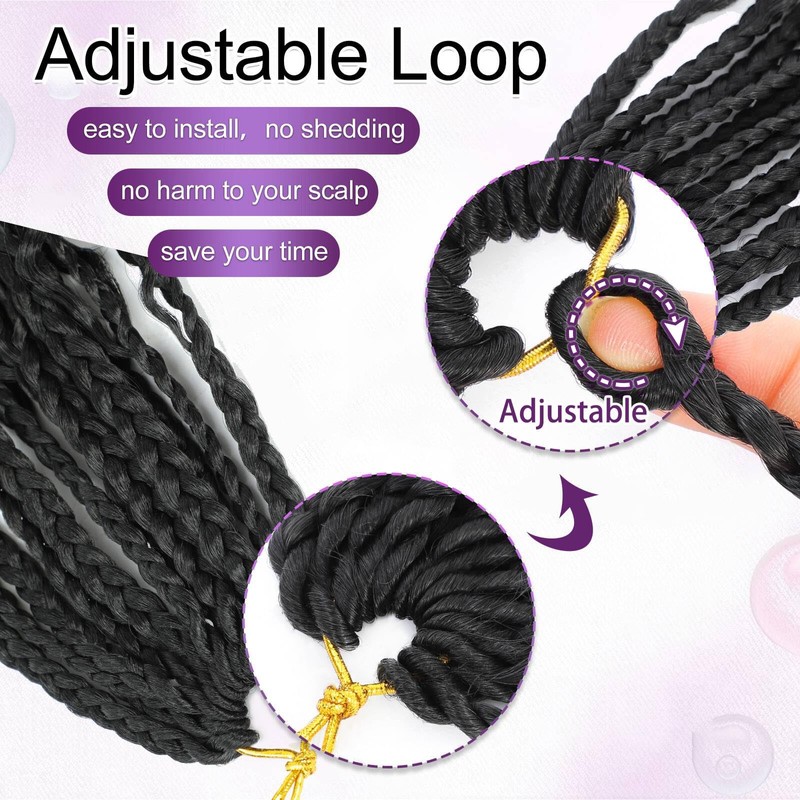 - 【Pre Looped Boho Box Braids Crochet Hair--Easy Use】: Bohemian boho braids crochet hair with adjustable loop,easy to pull the boho braids through or take out,super easy and quickly to finish a full head hairstyle,even friendly for beginners,it will save your time and money but will bring pretty and neat,tight shiny and silky hair style.