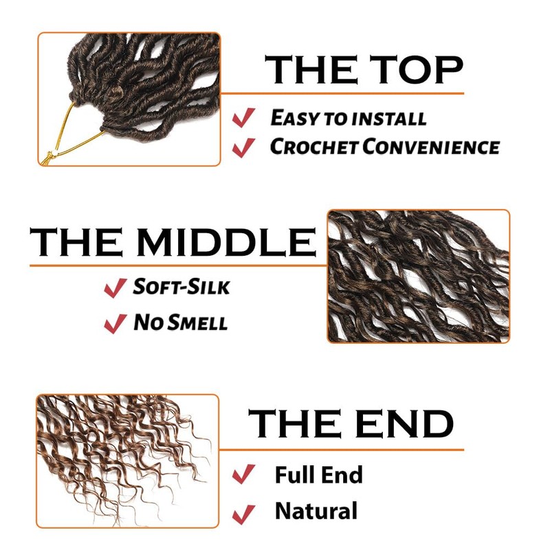 - Premium Material:Made From High Quality Low Temperature Synthetic Fiber, These New Goddess Faux Locs Crochet Hair, Perfect Balance Of Softness And Durability. The Natural-Looking Texture Mimics Real Hair, Ensuring a Seamless Blend With Your Natural Hair.
