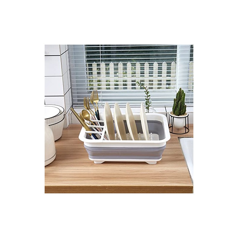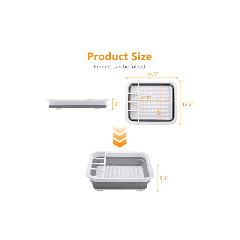 - Space-Saving and ConvenientThis collapsible dish rack is designed to save space and can be easily adjusted to fit your needs. You can collapse it for storage, which takes up minimal space, making it ideal for easy storage under the sink, in the camper, or the RV. Its expanded size is 14.4 x 12.2 x 4.92 (h) inches, and its collapsed size is only 2.16 inches