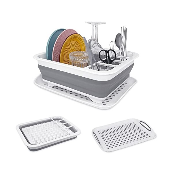 Goderewild Goderewild Collapsible Dish Rack with Drainboard for Drying Dishes - Space-Saving Foldable Design with Dinnerware Storage Tray/Basket - Perfect for Kitchen Counter Organization