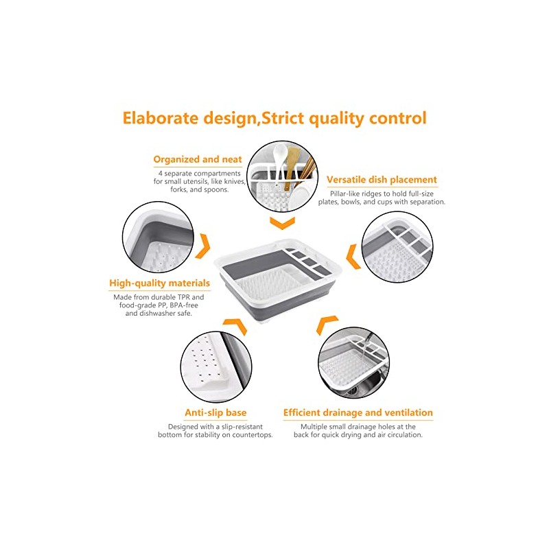 - High-Quality Customer ServiceOur collapsible dish rack set is made with industry-leading high-end quality assurance. If you have any issues, please get in touch with us on the order page, and we will be happy to assist you