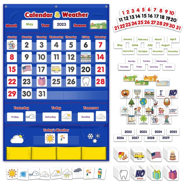 Godery Calendar and Weather Pocket Chart, Classroom Organized Chart, 149 Pieces